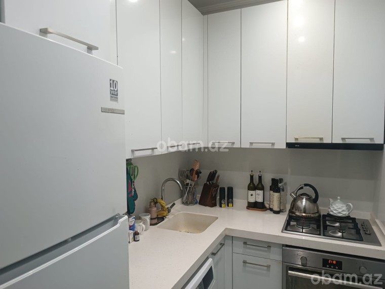 Mətbəx xüsusi sifarişlə hazırlanmış mərmər örtüklü mebel ilə təchiz olunub. Mənzildə kombi istilik sistemi quraşdırılıb, su, qaz və işıq daimidir. Təmir zamanı keyfiyyətli materiallardan istifadə olunub.